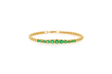 This 14k gold boxchain bracelet features stunning graduated emeralds for a one-of-a-kind statement piece. Crafted...