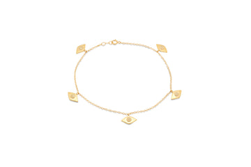 This 5 Diamond Evil Eye Anklet is crafted with 14k gold for a classic yet...