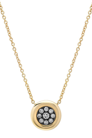 This large round pave diamond necklace is pure radiance. Brilliant diamonds cluster together in a...