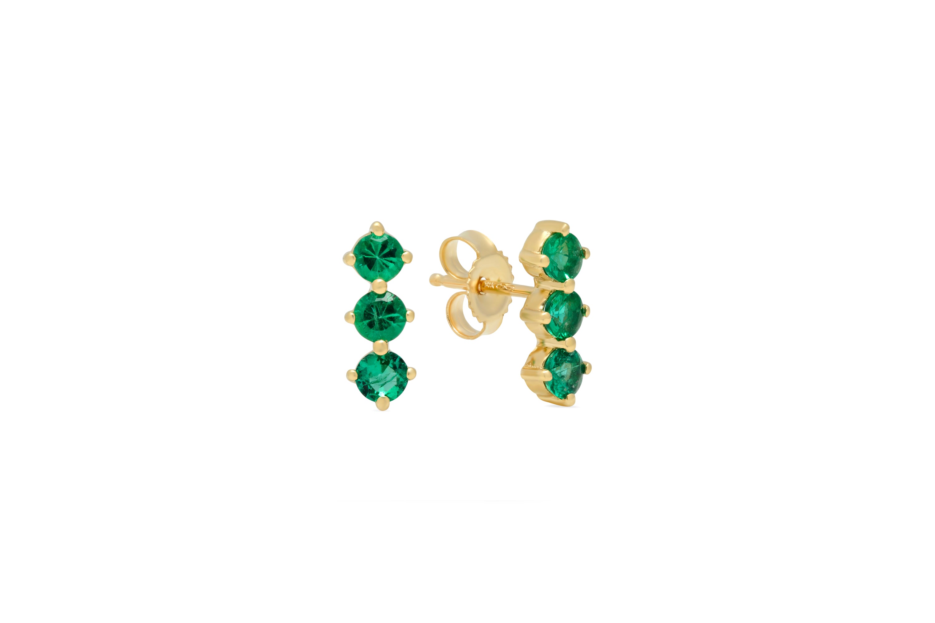 These 3 Emerald Stud Earrings feature natural green emeralds set in 14k gold for a timeless look. The bright and vibrant emeralds will stand out whether you wear these daily or for a special occasion.