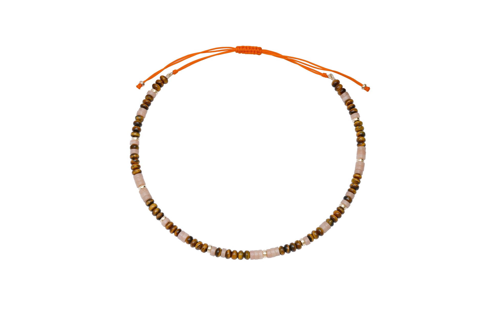 Elevate your summer style with this chic necklace featuring agate and tiger's eye beads accented by 14k gold. Perfect for layering, it adds a stunning touch of natural elegance to any outfit.