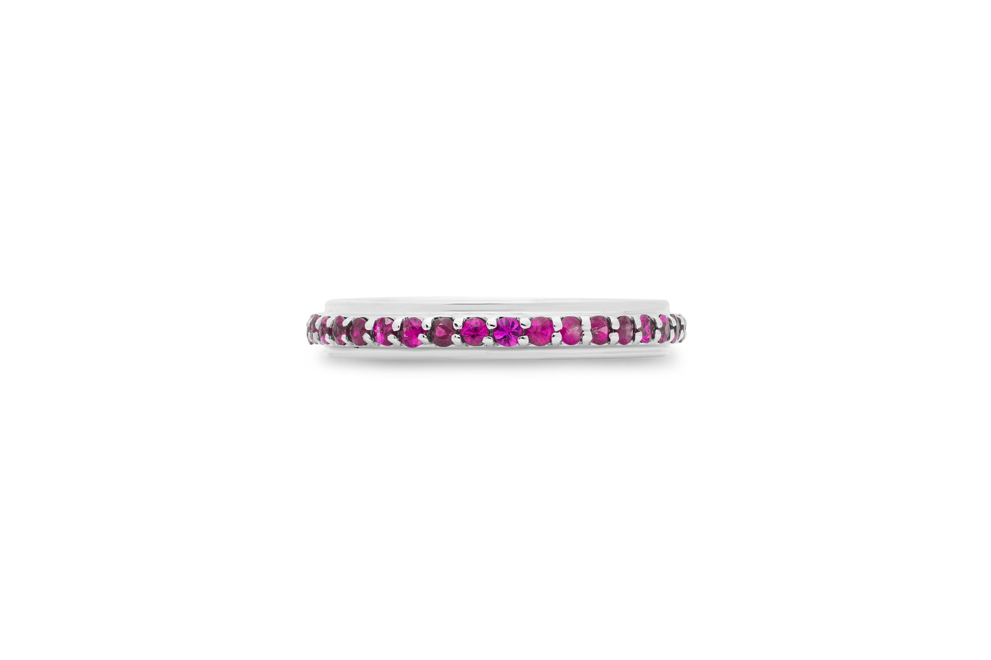 This lovely Ruby Eternity Ring is crafted from 14K gold and features a classic, modern style. The real ruby gemstone pops with color, adding a touch of vibrancy to your everyday look. Stack it with other rings for a unique and stylish look.