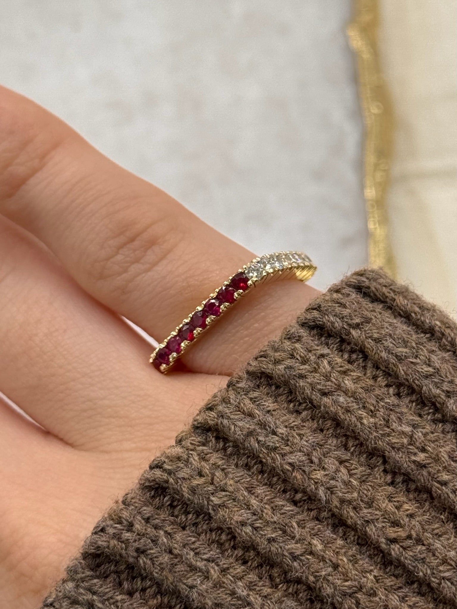 This modern and chic diamond and ruby square ring is perfect as a pinky ring, featuring a unique design that sparkles with elegance. Add a touch of sophistication to any outfit with this eye-catching piece.