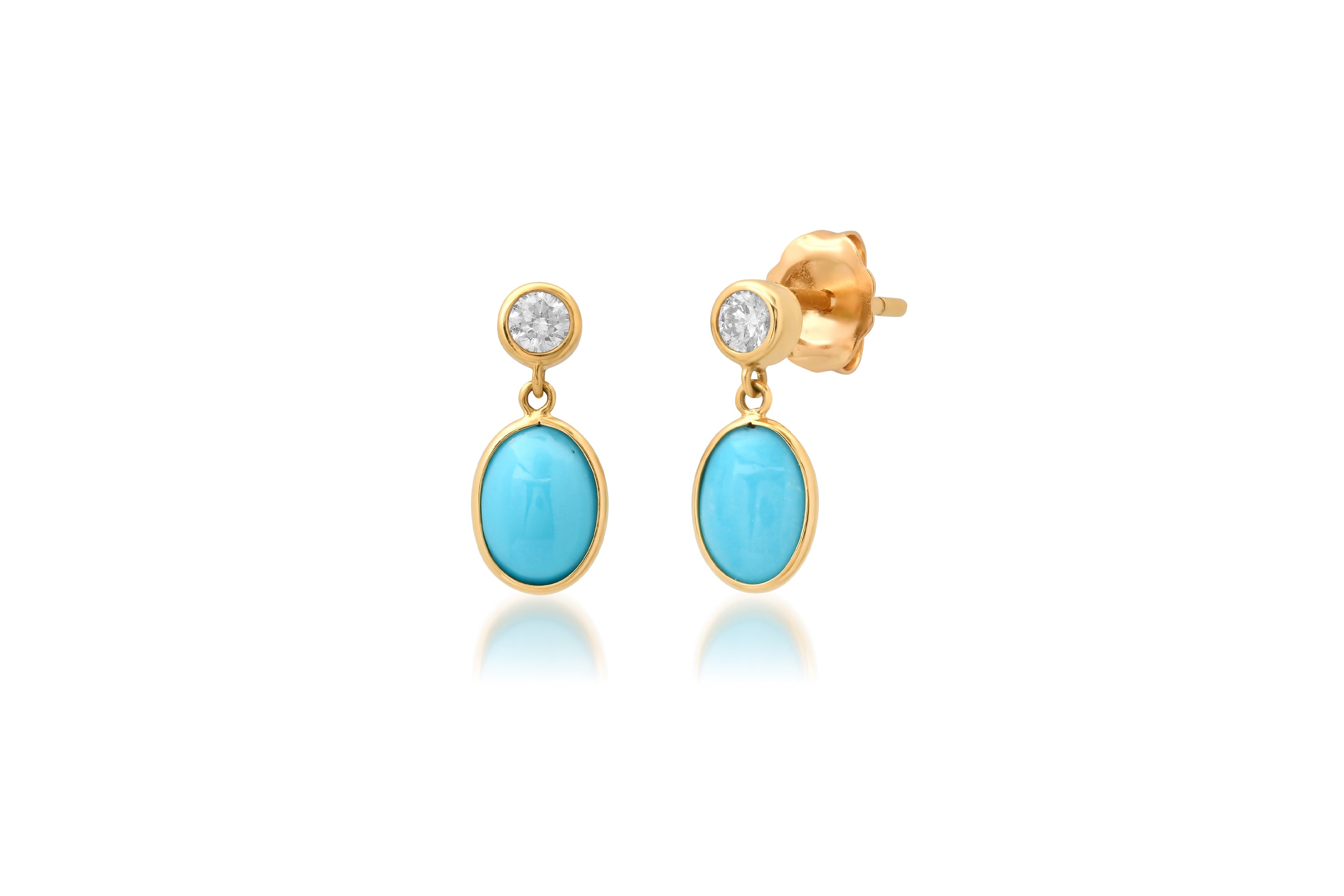 These Diamond and Turquoise Dangle Stud Earrings are the perfect blend of chic, modern, and fun. With their gorgeous design, they are sure to make a glamorous statement. Elevate any outfit with these stunning studs.