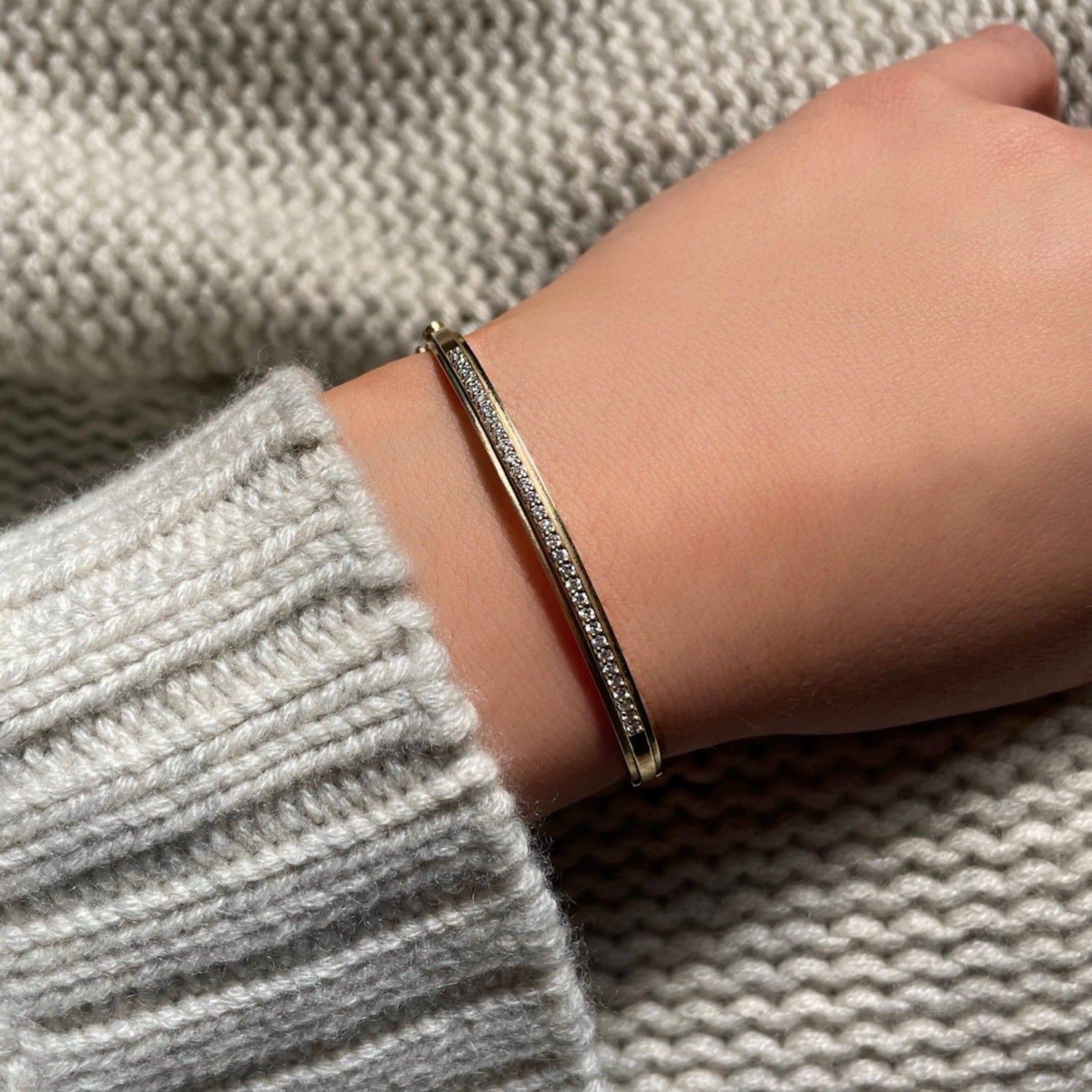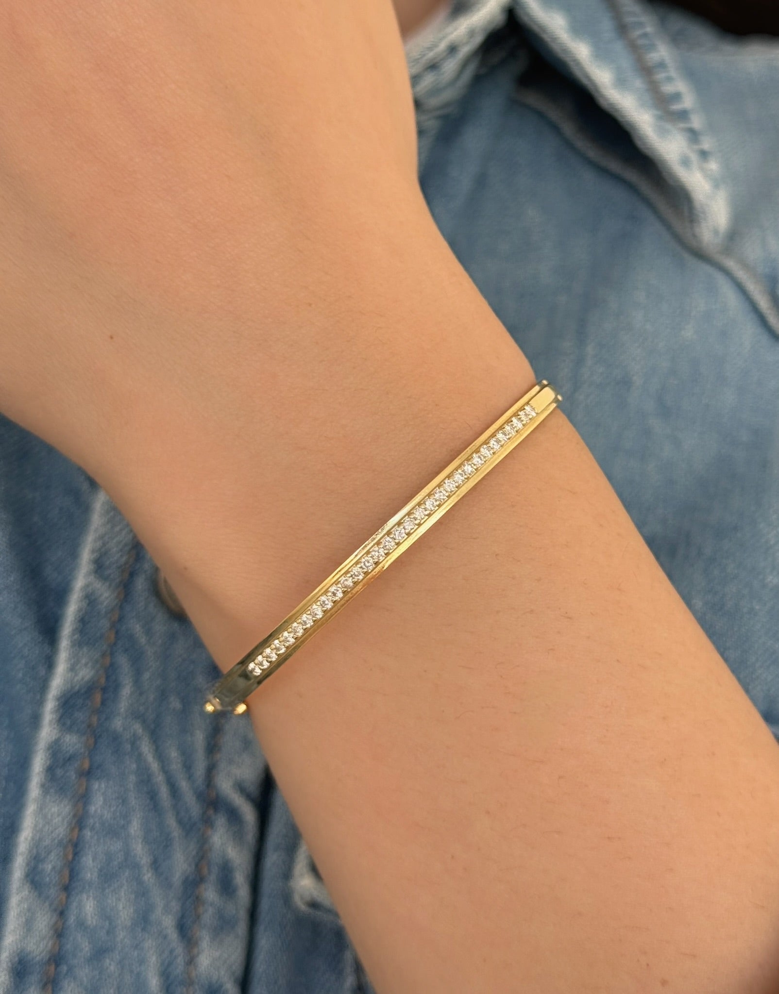 The simple and elegant Diamond Bangle is beautiful addition to a bracelet stack!
