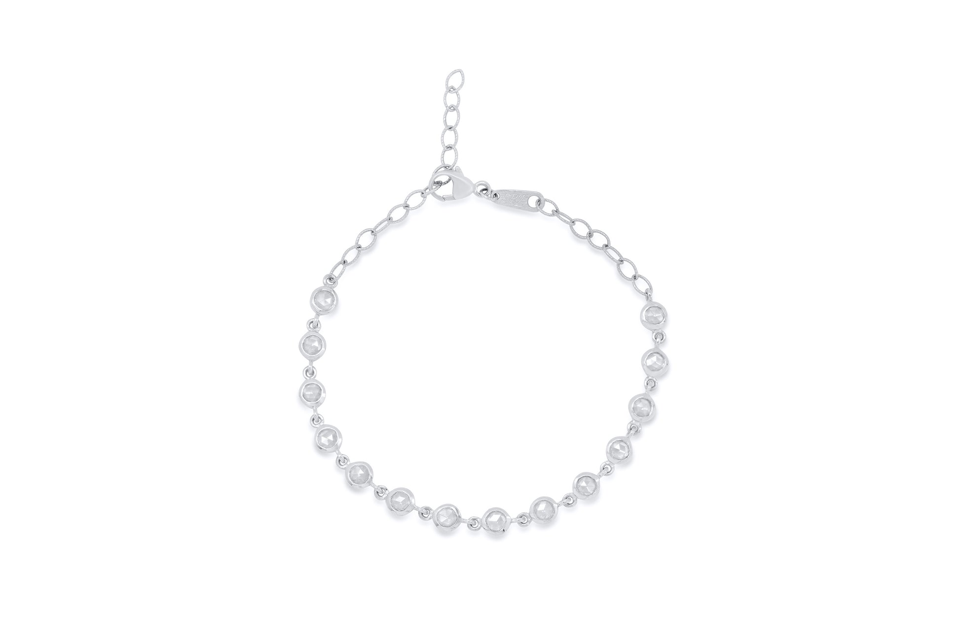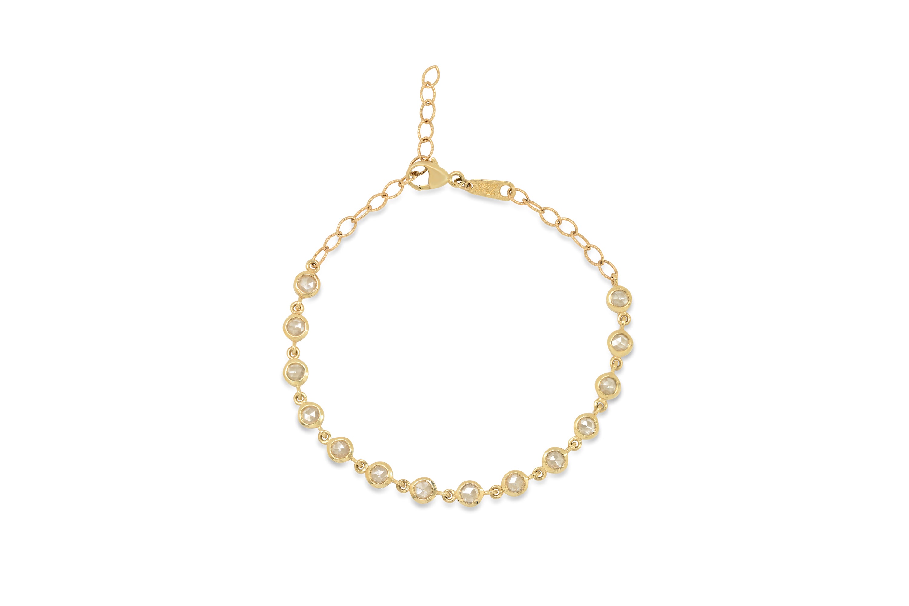 This Diamond Bezel Bracelet is made with 14k solid gold and stunning full-cut diamonds for a chic and modern look. Its eye-catching design is sure to make a statement.