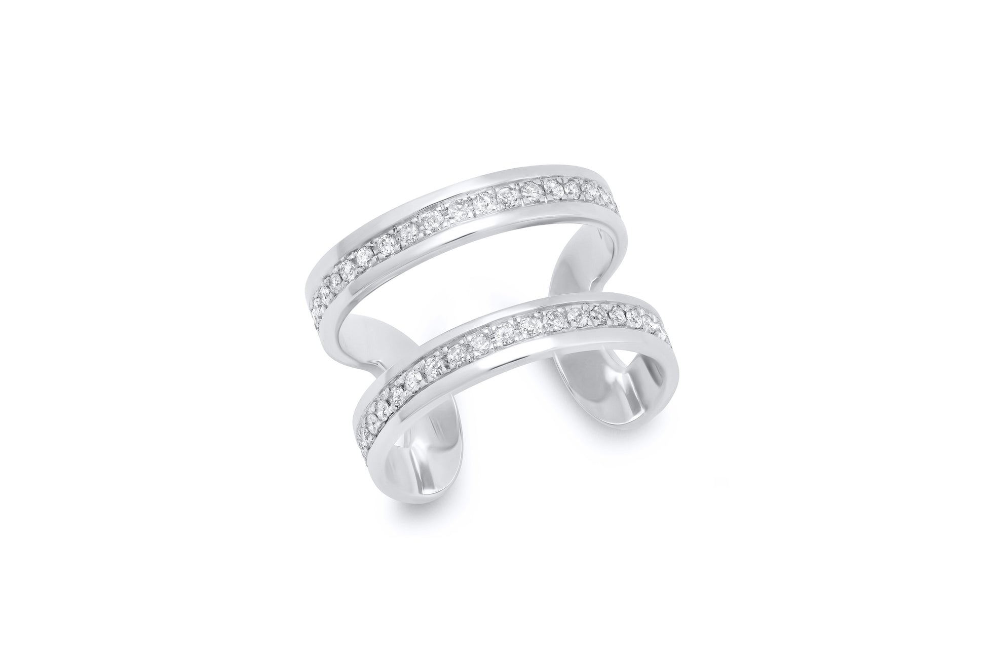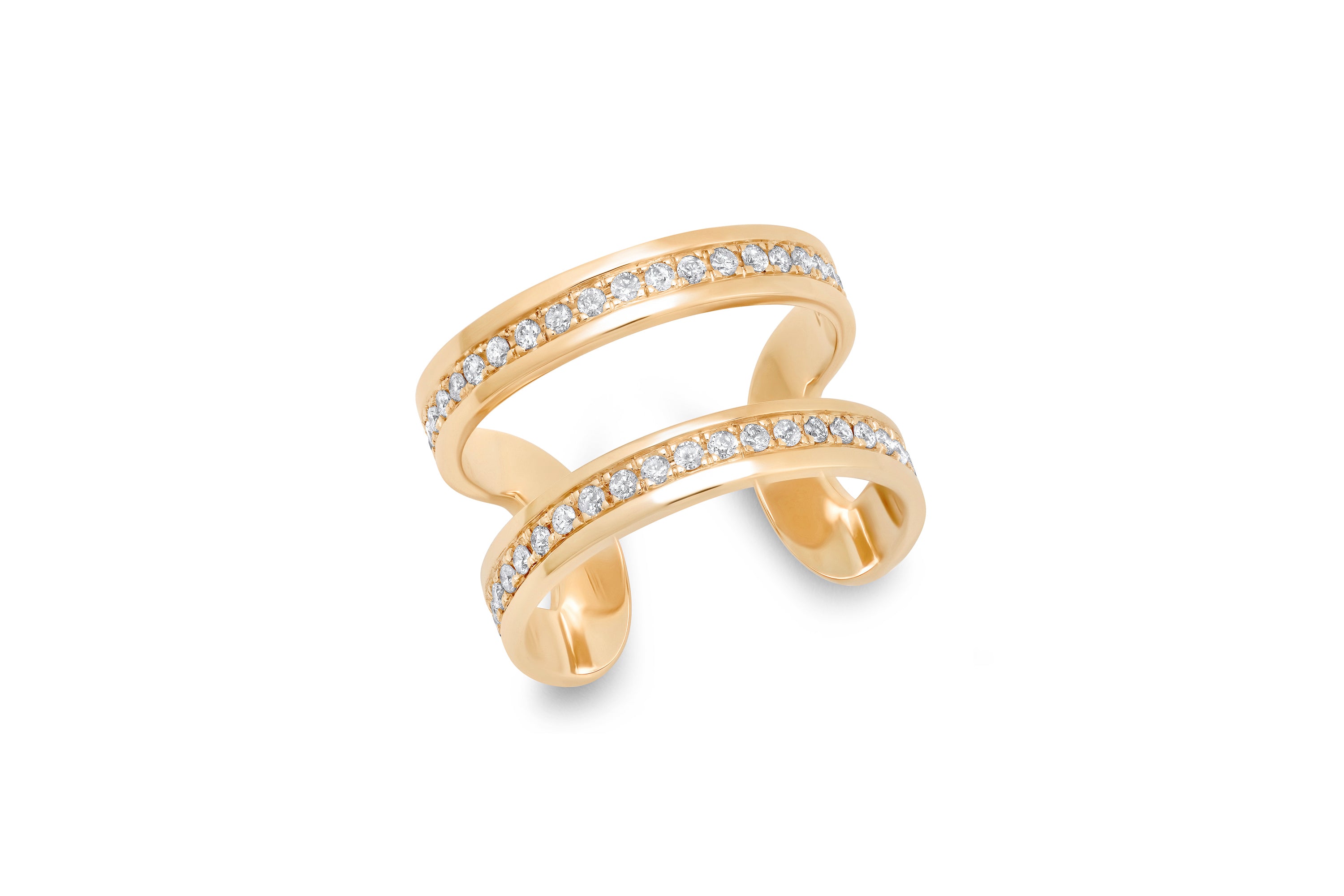 This Diamond Open Cigar Ring is an exquisite blend of sophistication and edge. Crafted with 14k gold and dazzling diamonds, this timeless yet cool accessory is perfect for stacking with classic pieces or turning a few heads on its own. Make a lasting statement with this stunning piece.