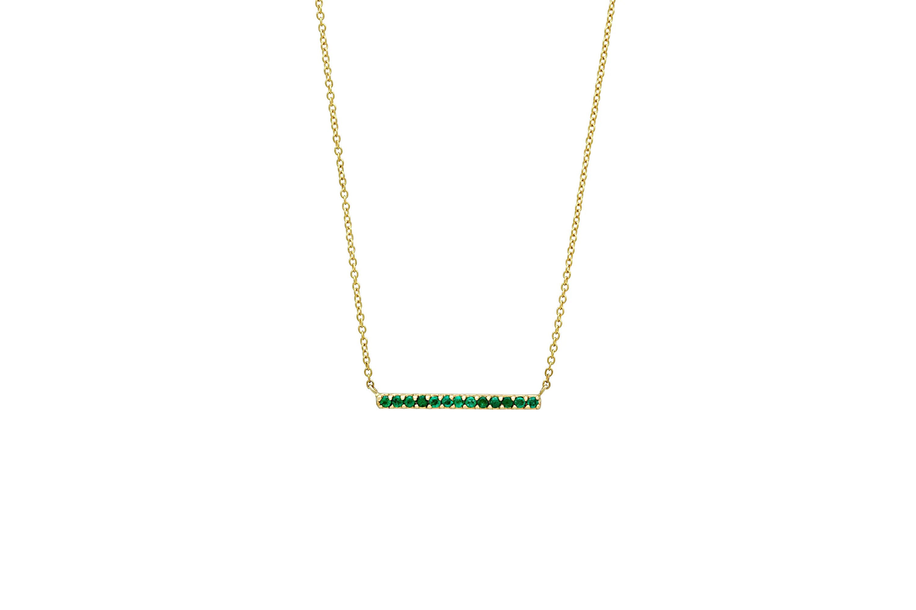 Make a statement with this chic yet simple Emerald Bar Necklace. Featuring beautiful genuine emeralds, this stunning piece will add a luxurious touch to any outfit.