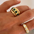 This 5 Colombian Emerald Ring is a stunning statement piece, with a chic modern design. Crafted with genuine Columbian emeralds, its timeless beauty is sure to become a treasured heirloom.