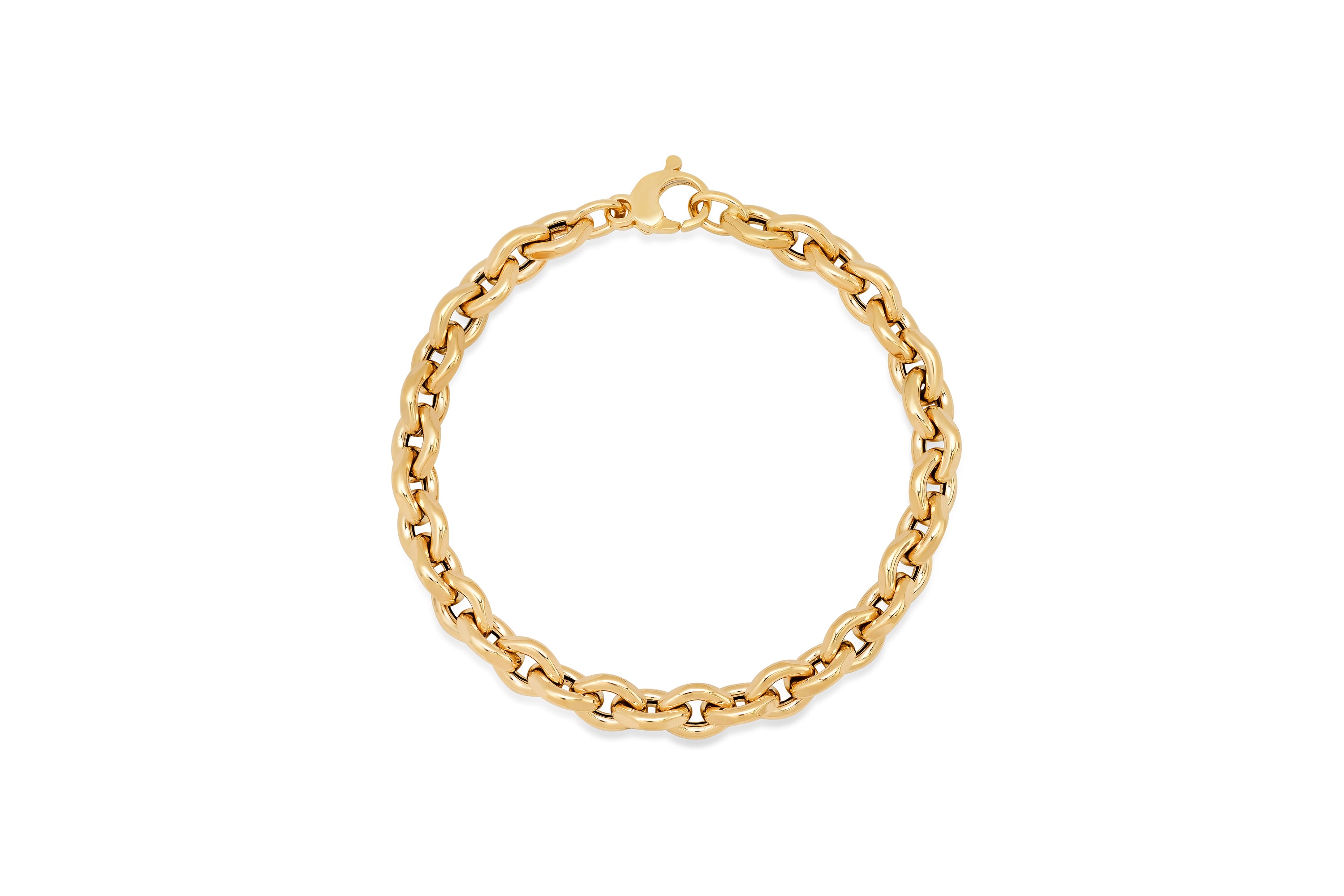Be careful what you wish for with this 14 karat evil eye link bracelet! This handmade gold bracelet offers a layered look with its hollow yet sturdy pieces, ensuring that it's wearable for any daily look. Love it and let it protect you!