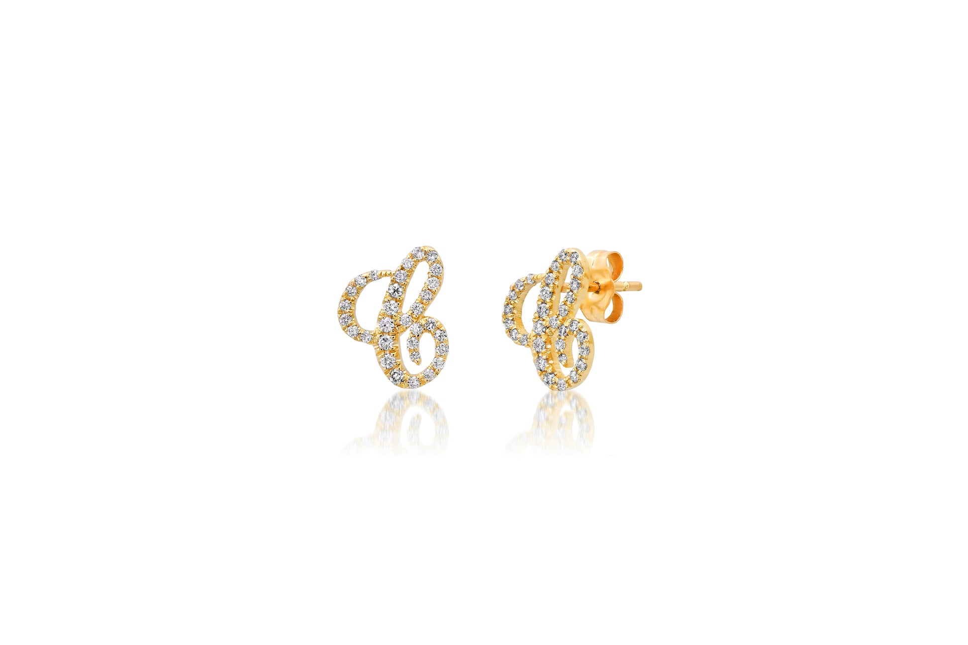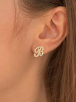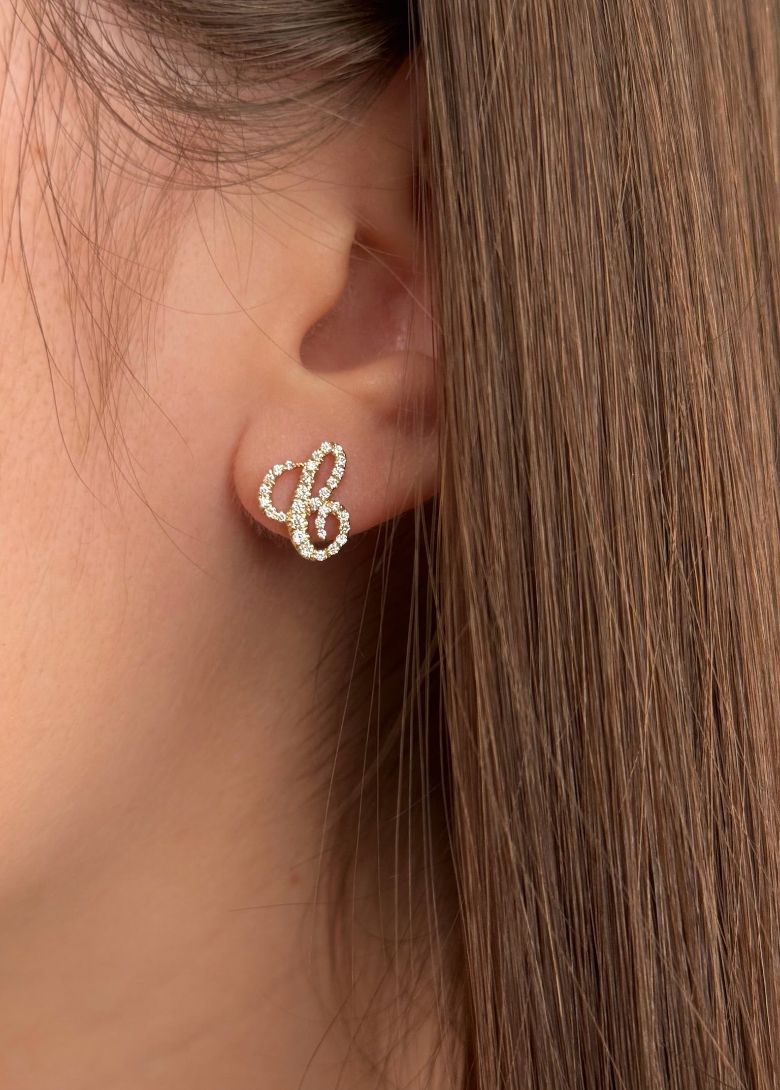 The Mini Diamond Script Initial Stud Earring features a delicate script design accented with sparkling diamonds, offering a personalized touch of elegance for everyday wear.