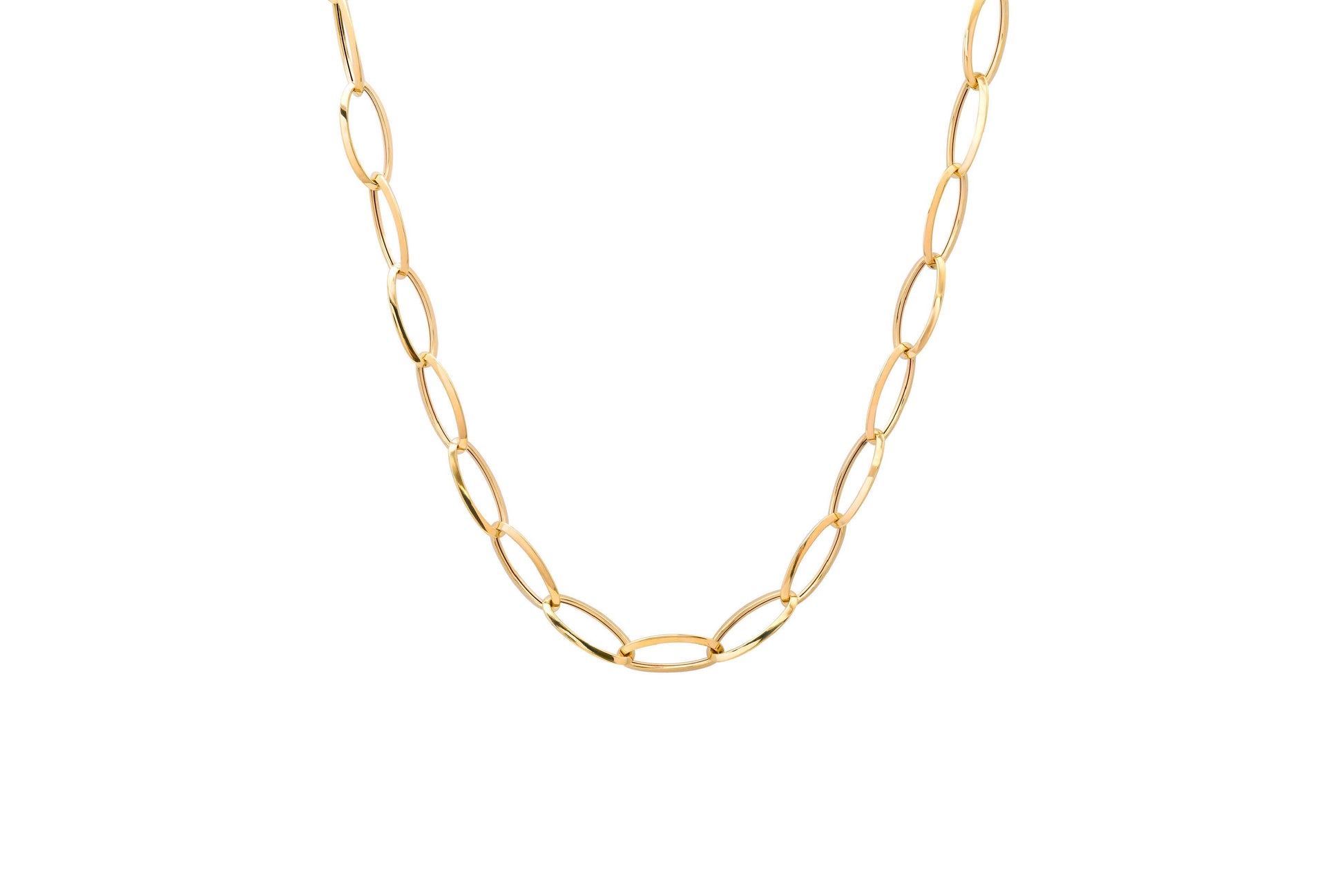 Make a bold statement with this stunning Mini Jumbo Link Necklace. Its chic, oversized links are perfectly sized for layering or wearing alone. Stack it with delicate pieces for a sophisticated look, or let it shine as your go-to accessory. Effortlessly versatile and undeniably striking.