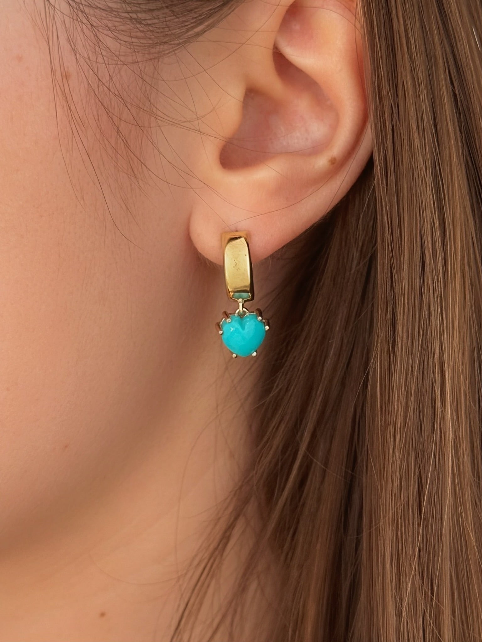 These Mini Turquoise Heart Huggies add a touch of charm to any outfit. Their versatile design makes them perfect for everyday wear, combining elegance with a subtle pop of color. Comfortable and stylish, they’re a beautiful accessory for any occasion.
