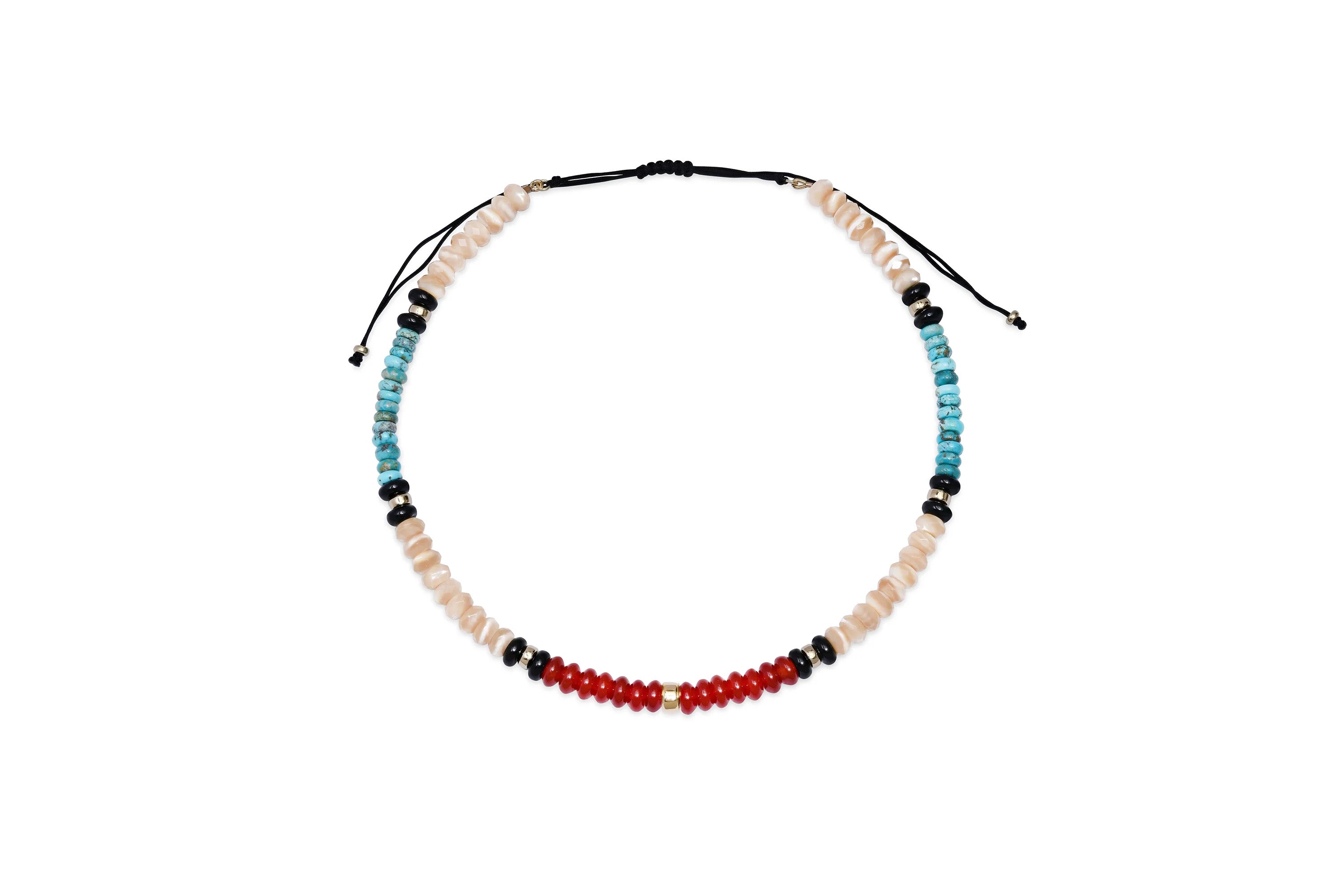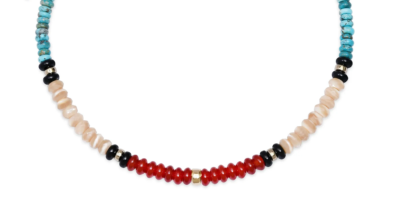Mother of Pearl, Turquoise, Black Agate, and Red Agate Beaded Necklace