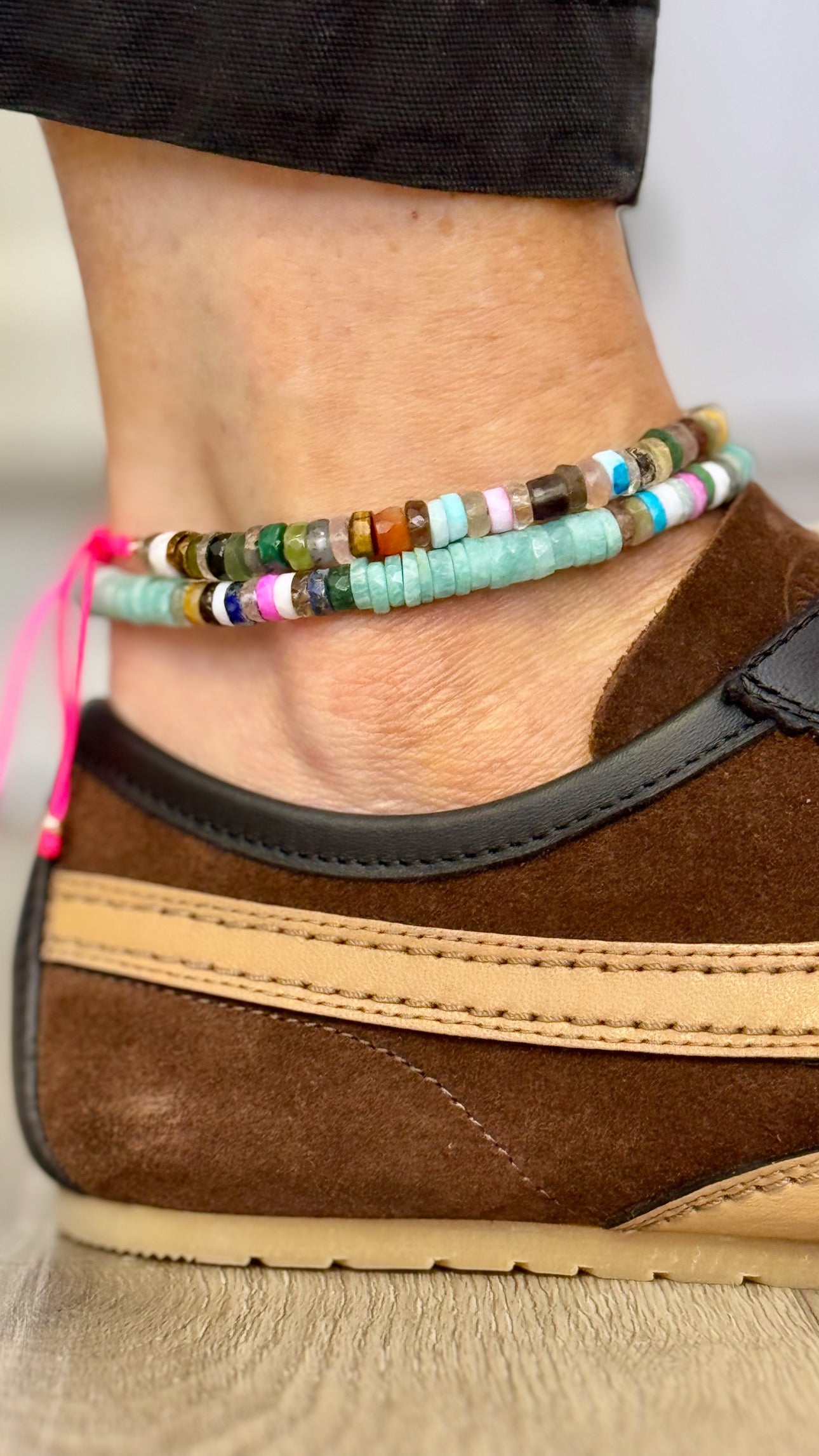 Add a vibrant touch to your summer style with this Multi-Color Opal Anklet. Its colorful opal stones catch the light beautifully, making it an eye-catching accessory perfect for sunny days and vacation!