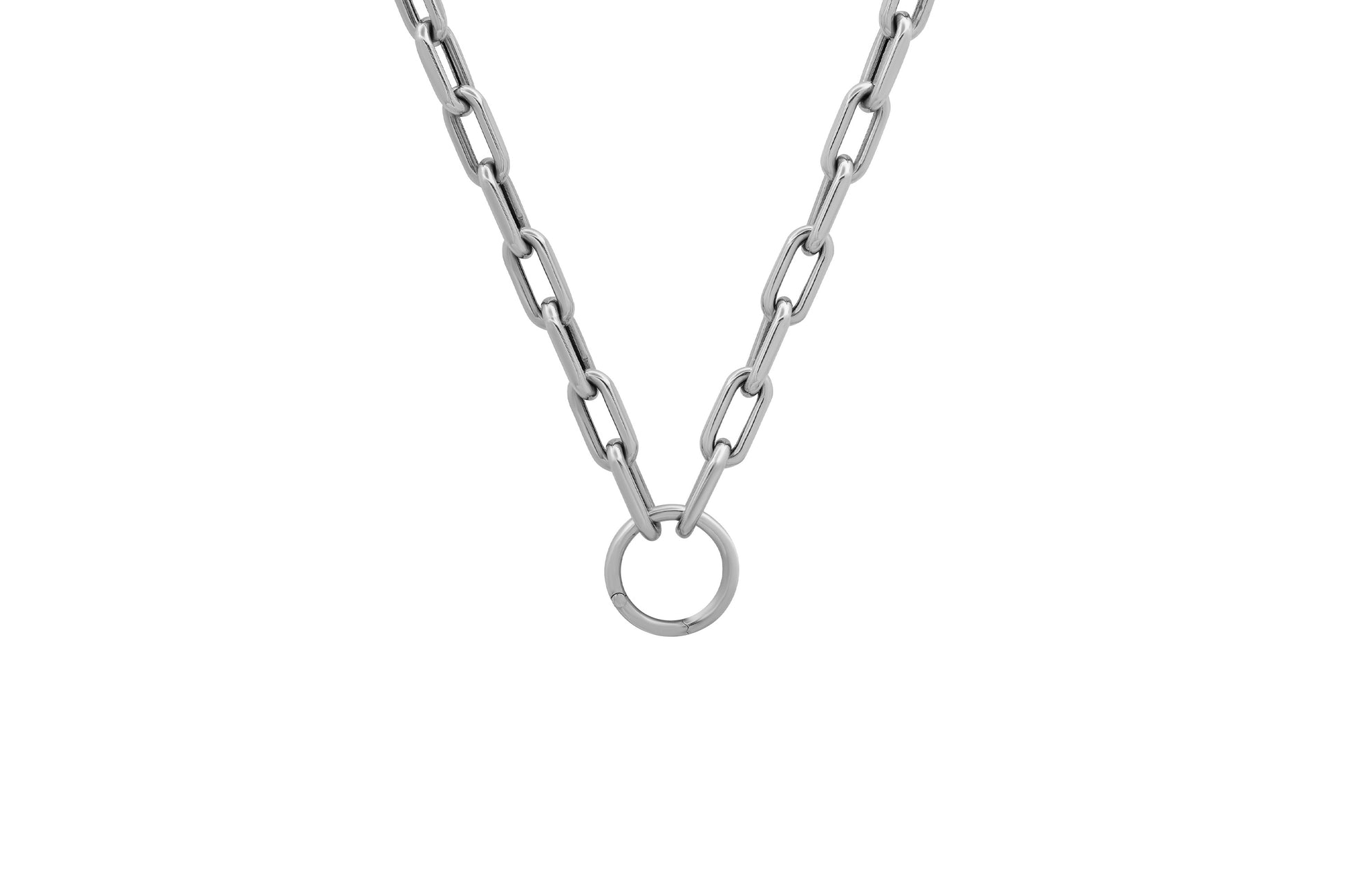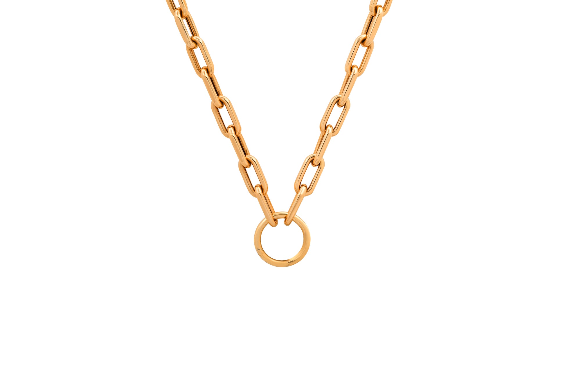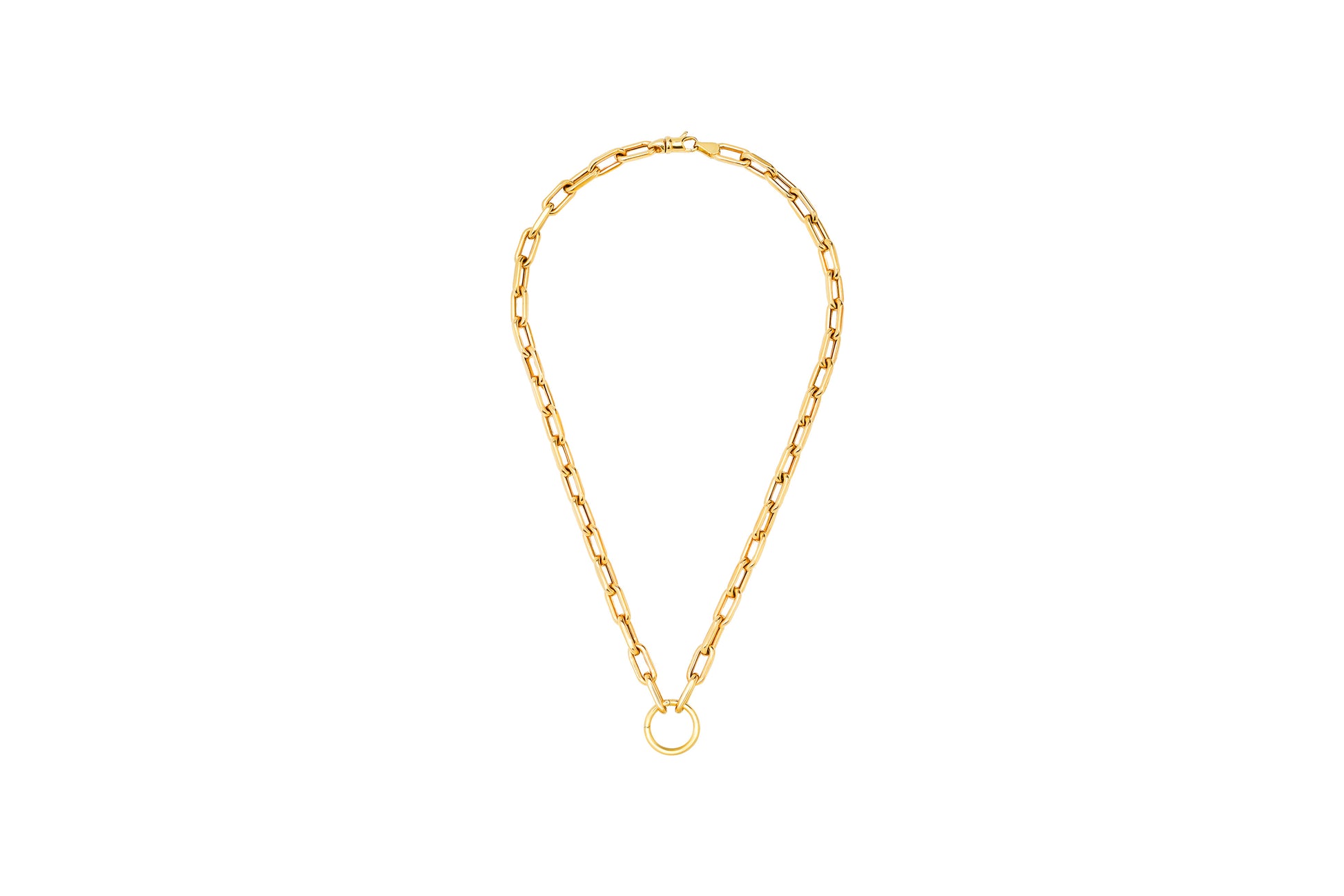 Open Link Chain Necklace with Solid Gold Charm Ring Holder
