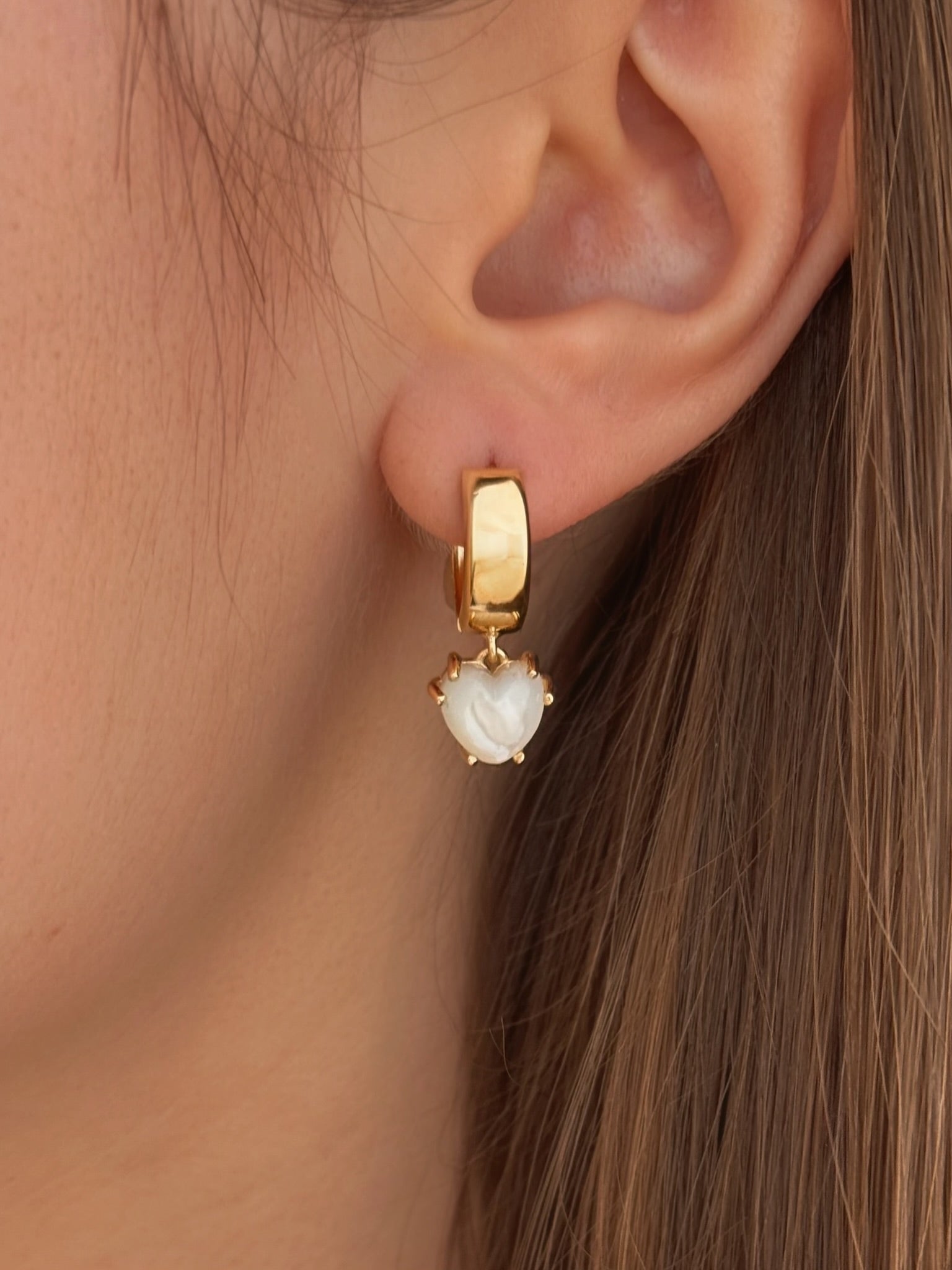 With their graceful pearl heart design, these huggie earrings bring subtle sophistication and a touch of romance, making them a versatile jewelry essential.