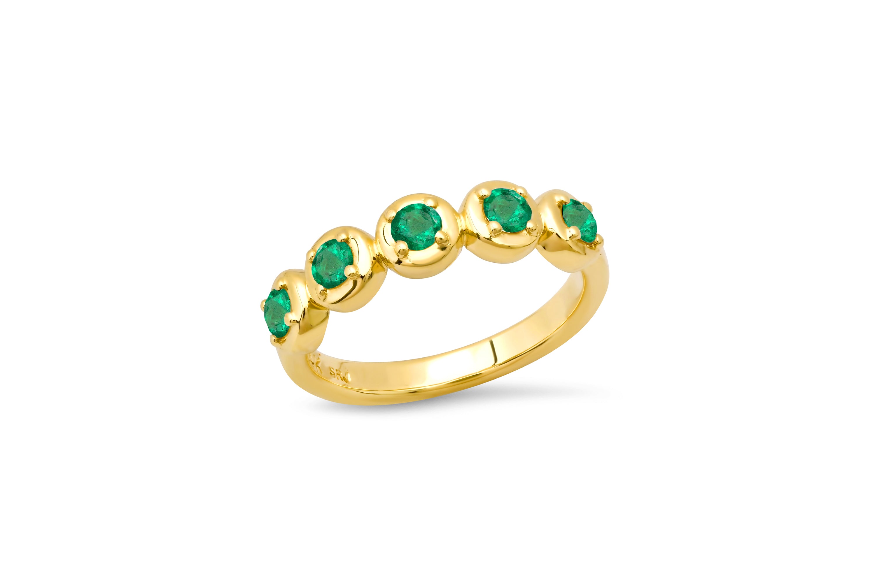 This stunning Round 5 Emerald Cloud Ring is crafted with modern design in mind. Its cool, stackable style is perfect for everyday wear, while the 5 sparkling emeralds add an elegant touch. A must-have addition to any jewelry collection.