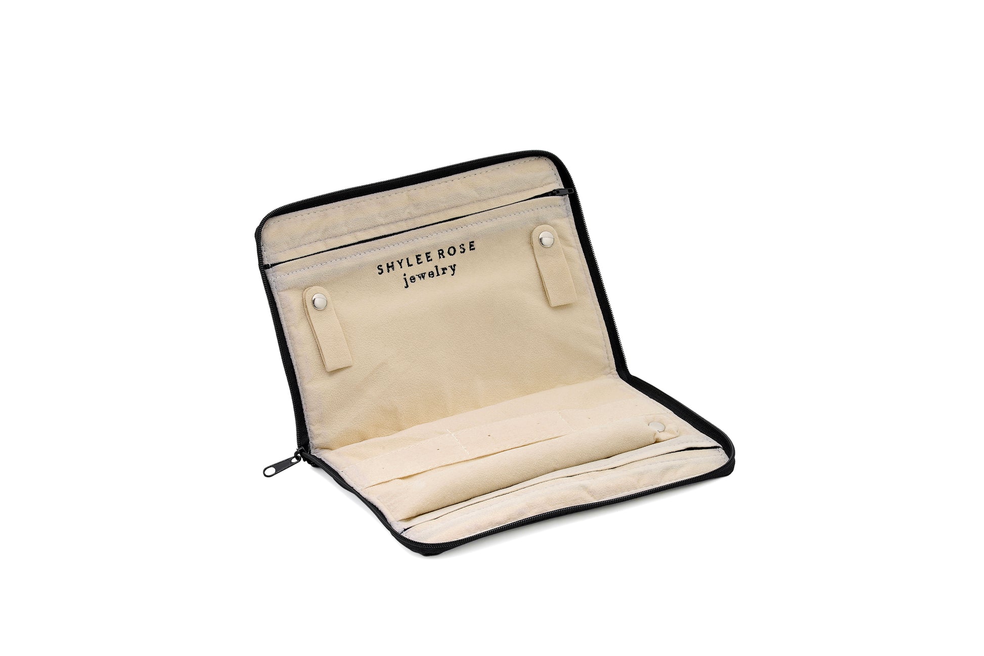 The perfect travel pouch to fit all your favorite jewelry pieces when you're on the go! This soft, faux-leather pouch is an easy, "throw in your bag" jewelry holder with zippered storage sections on each side.