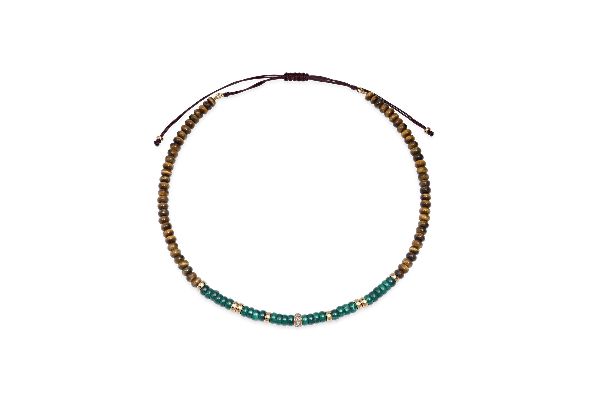 Tiger's Eye, Malachite, 14k Gold and Diamond Beaded Necklace