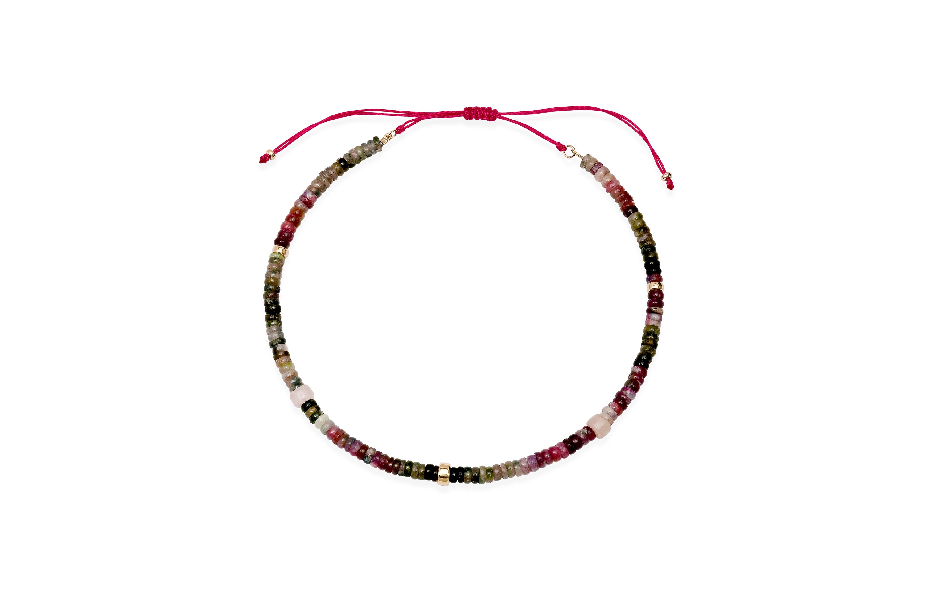 Add a pop of color to your outfit with our stunning Tourmaline and Pink Jade Beaded Necklace. The gorgeous ombre tourmaline beads are complemented by 14k gold beads for a touch of luxury. Elevate any look with this eye-catching necklace.