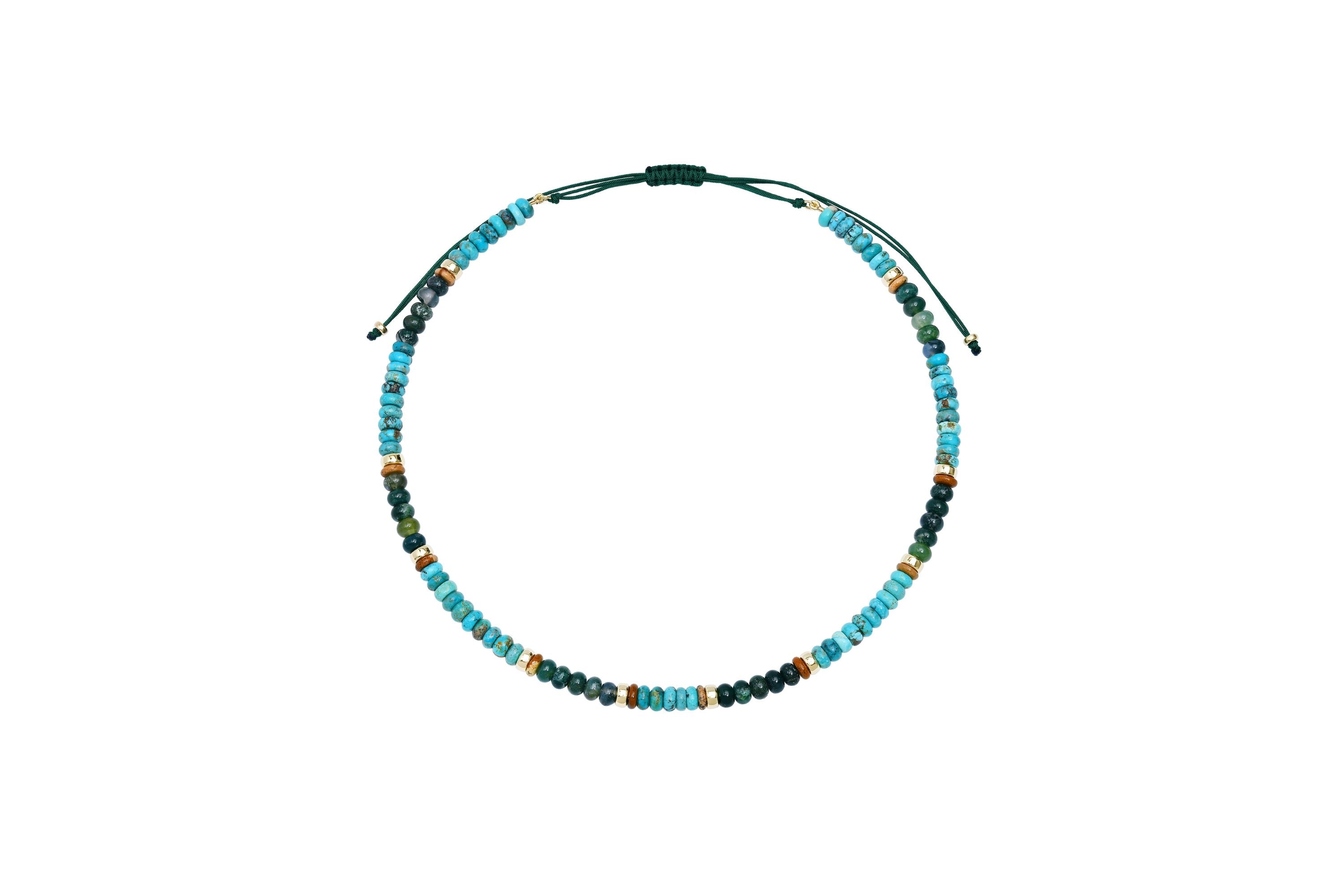 Coastal elegance meets everyday versatility in this beaded necklace. Turquoise, picture jasper, and moss agate blend with 14k gold accents to capture that perpetual vacation vibe. Layer it, stack it, or wear it solo—each stone's natural beauty ensures a one-of-a-kind piece that brings warmth and wanderlust to any outfit.
