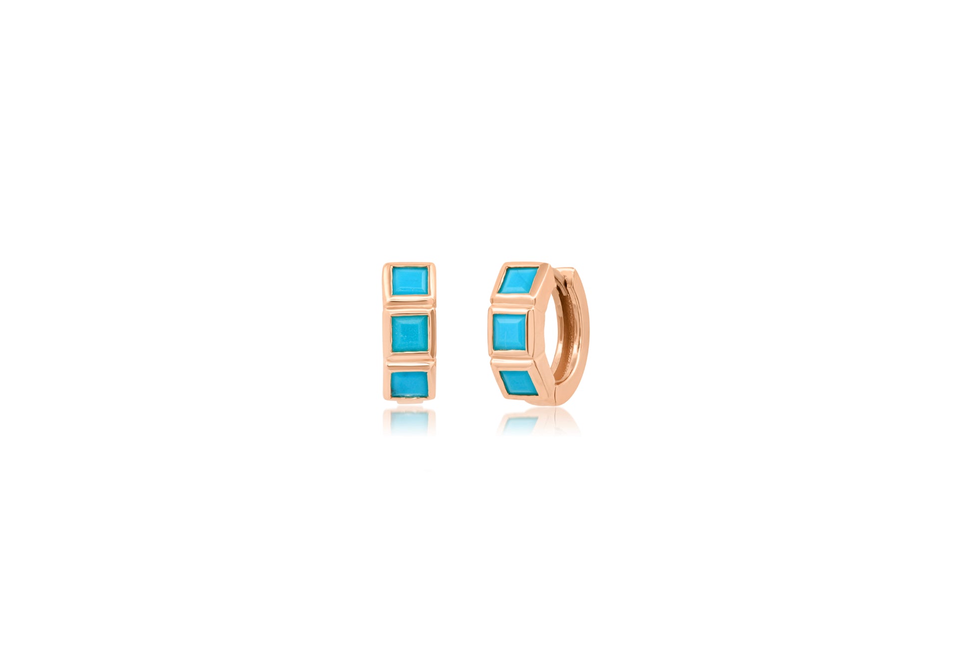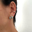 These Turquoise Princess Huggie Earrings bring a unique sophistication that will make you stand out. Adorned with colorful turquoise stones set in 14k gold, they are the perfect way to add some color to your stack! Let the bright stones make your everyday look pop.